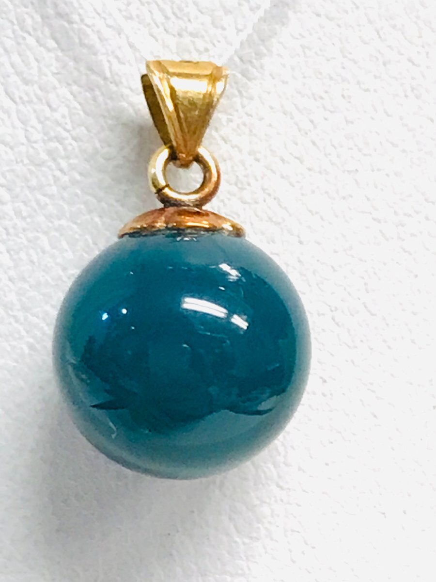 - K18ゴールド 緑石 ペンダントトップ 10mm玉 qoj.YP807