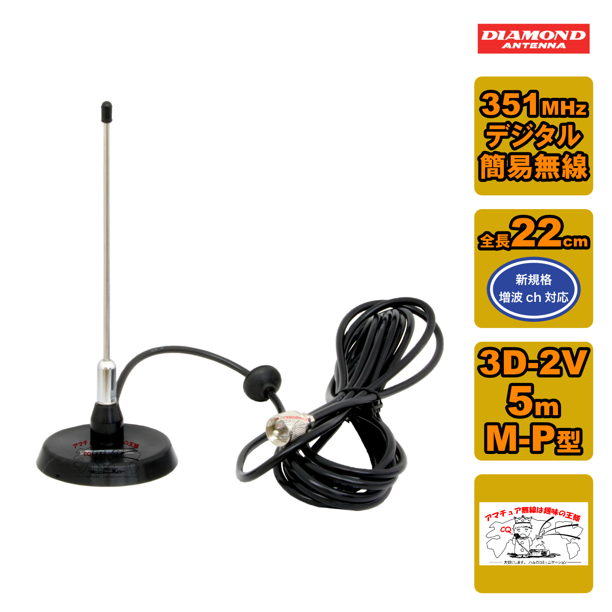 - M300MRDU ダイヤモンド 351MHzデジタル簡易無線用アンテナ(車載用) M-P型 ネジ式マグネット基台セット