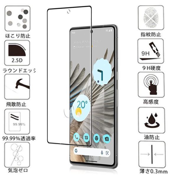 - 黒 Google Pixel7 Pro 3D 曲面 ガラス フィルム ググル ピクセル セブン プロー 画面 保護 シート シール カバー スクリーン Glass Film 9H