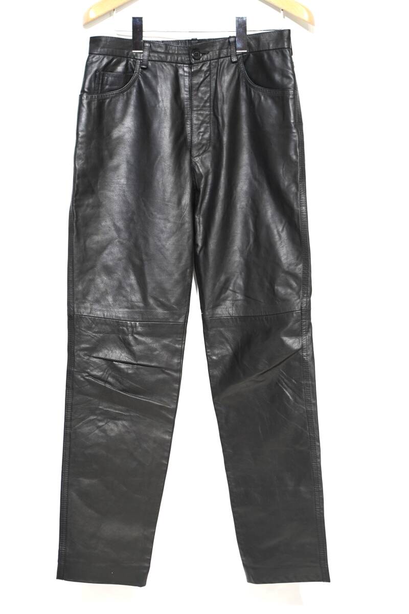 - コスチュームオム リアルレザーパンツ 44 ボタンフライ 黒 ブラック イタリア製 軽量本革製 最高級 コインポケットデザイン