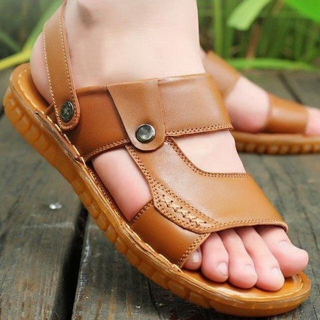 - ビーチサンダル メンズ 本革サンダル 男性靴 ぺたんこ ローマブール レザーサンダル 牛筋ソール 可動式ストラップ 2WAY イエロー 26.5cm