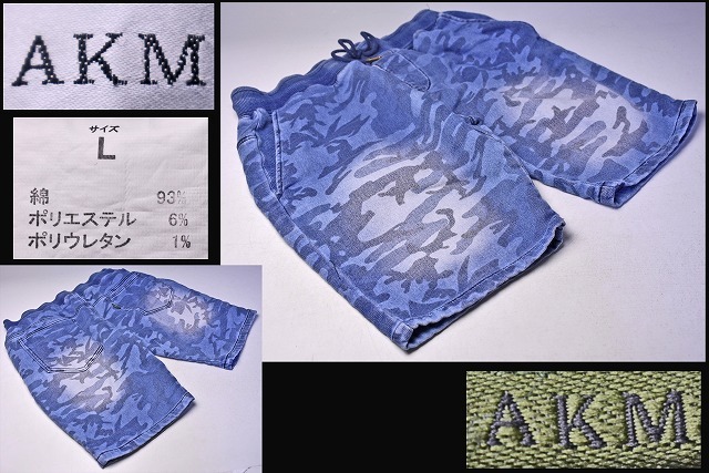 > AKM ★ エイケイエム ★ 短パン ★ スウェットパンツ ★ デニムカモフラージュ柄 ★ L ★ 綿93%ポリエステル6%ポリウレタン1% ★ 中古品 ★
