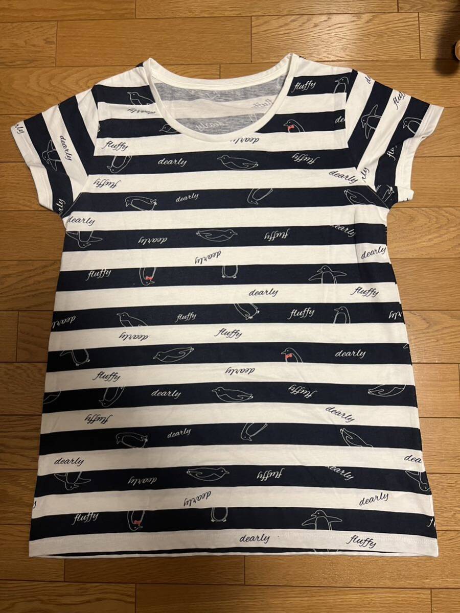 - かわいいペンギン柄 ボーダー Tシャツ L スクロール レディース