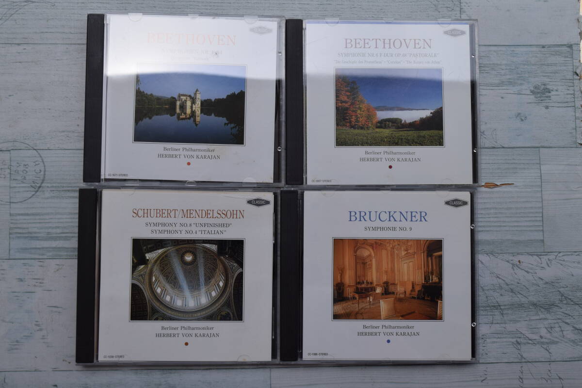 > カラヤン&ベルリン・フィル@ベートーヴェン:交響曲1.4.6番/序曲/シューベルト:未完成/メンデルスゾーン:イタリア/ブルックナー:9番/4CD