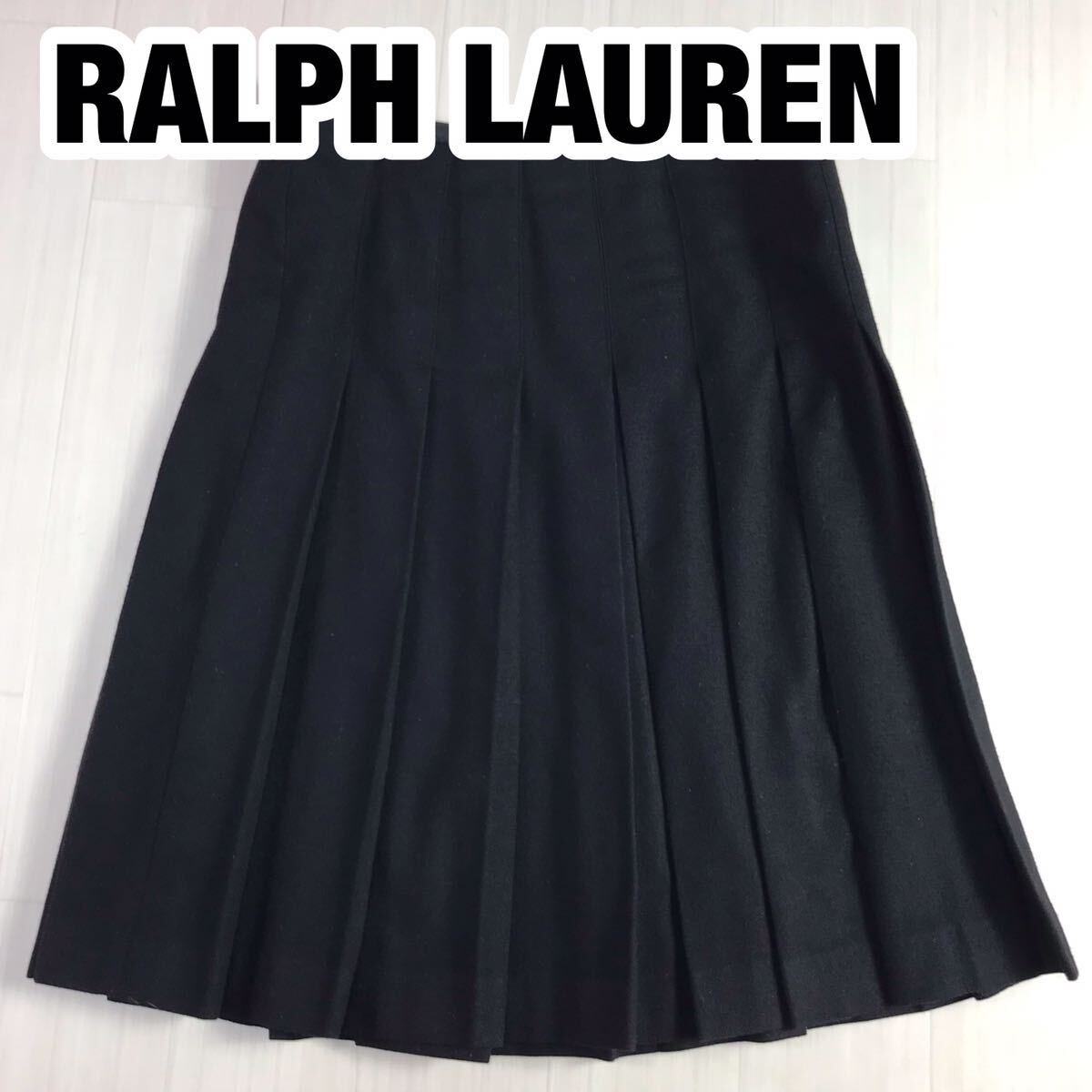 - RALPH LAUREN ラルフローレン プリーツスカート 7 ブラック カシミヤ混 膝丈スカート
