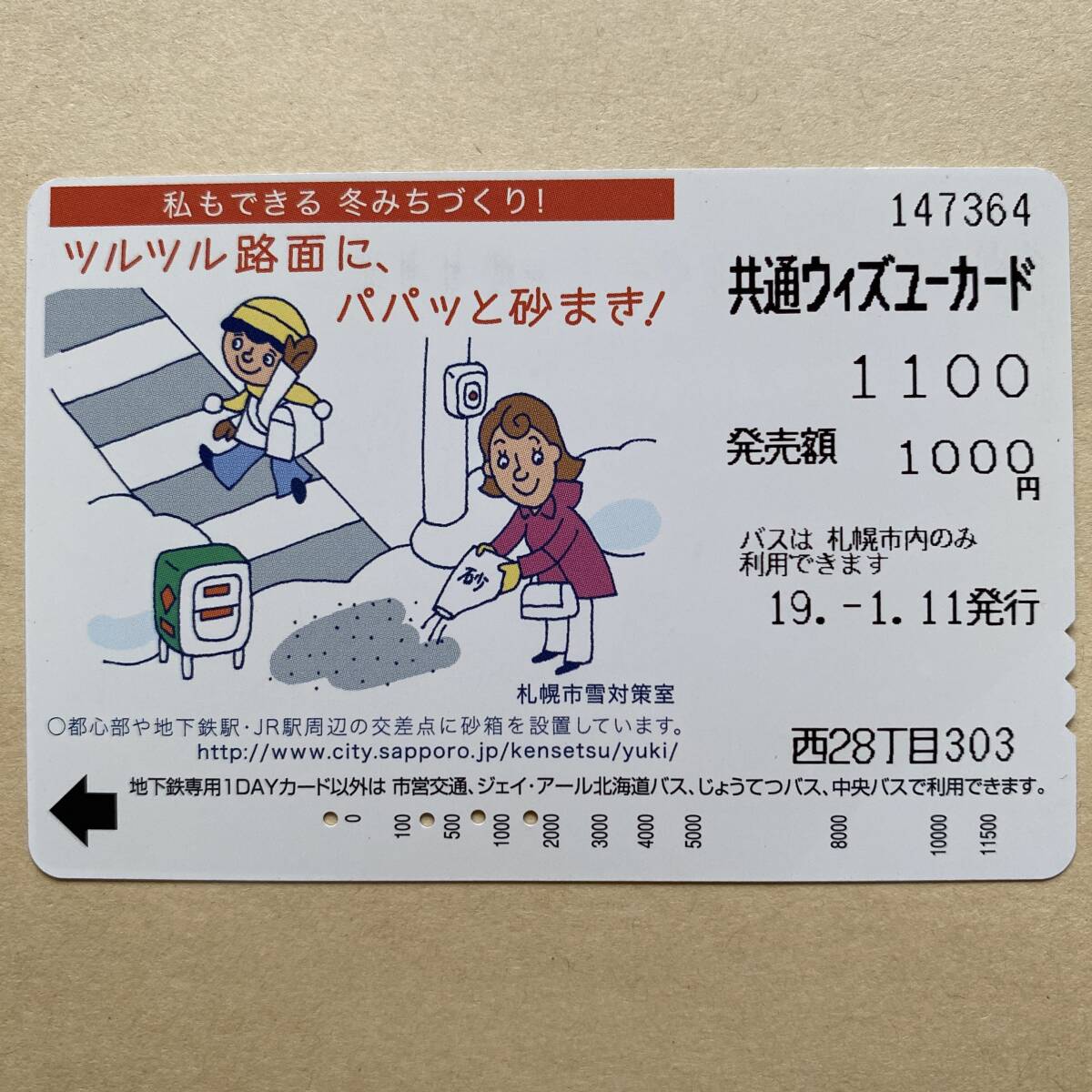 - 【使用済】 ウィズユーカード 札幌市交通局 ツルツル路面に、パパッと砂まき! 札幌市雪対策室