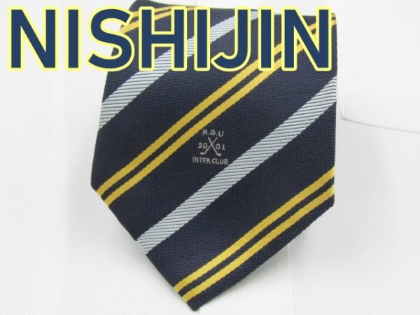 - 【ご当地】【関西ゴルフ連合】 OC 855 西陣織 NISHIJIN ネクタイ 黒系 黄色系 ストライプ ワンポイント ブランドロゴ ジャガード