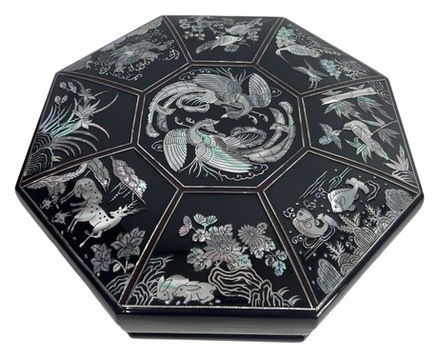 - ビンテージ 韓国伝統工芸 漆器 螺鈿細工八角箱 オードブル 弁当箱 容器 1990年代 SMG606