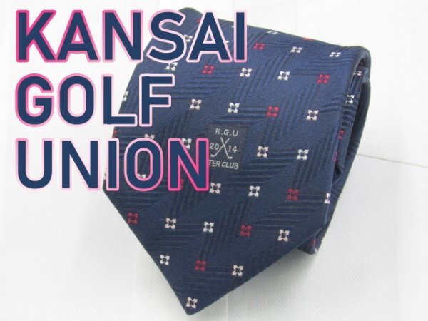 > 【ご当地】【ゴルフ】【関西ゴルフユニオン】 OC 871 関西ゴルフユニオン ネクタイ 紺系 ドット 花 ワンポイント ブランドロゴ ジャガード