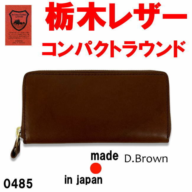 - ダークブラウン 栃木レザー 0485 ラウンド 長財布 コンパクト でも大容量 日本製 メンズ レディース