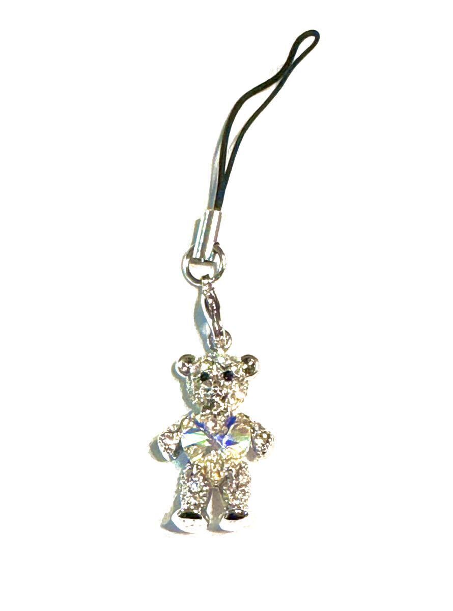 - キラキラ くまストラップ 小 オーロライエロー カラーストーンチャーム シルバーカラー