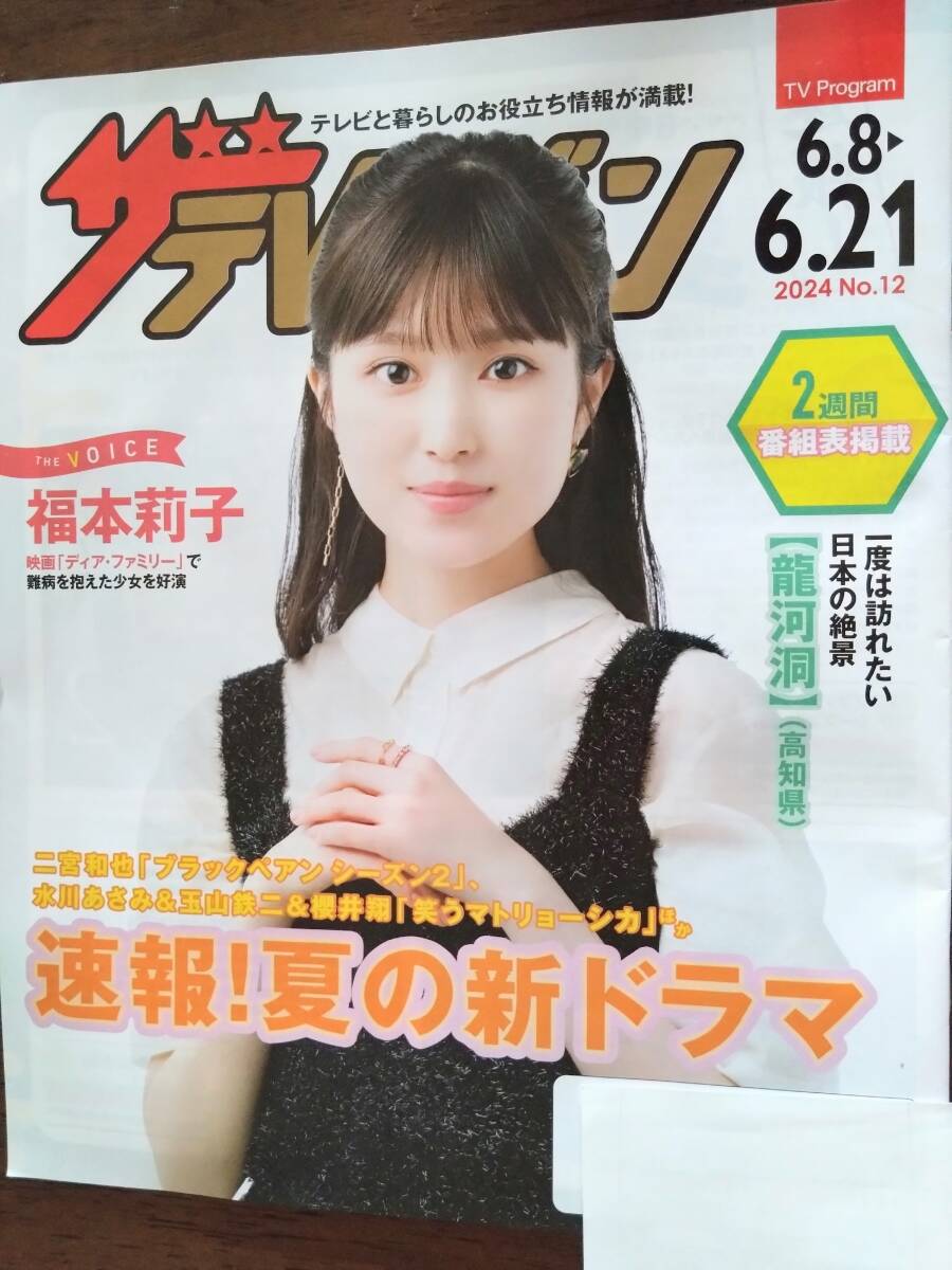 - ◎[ザ・テレビジョン 2024.6/8-6/21 日本生命]非売品 福本莉子/夏の新ドラマ/虎に翼 伊藤沙莉/光る君へ 吉高由里子