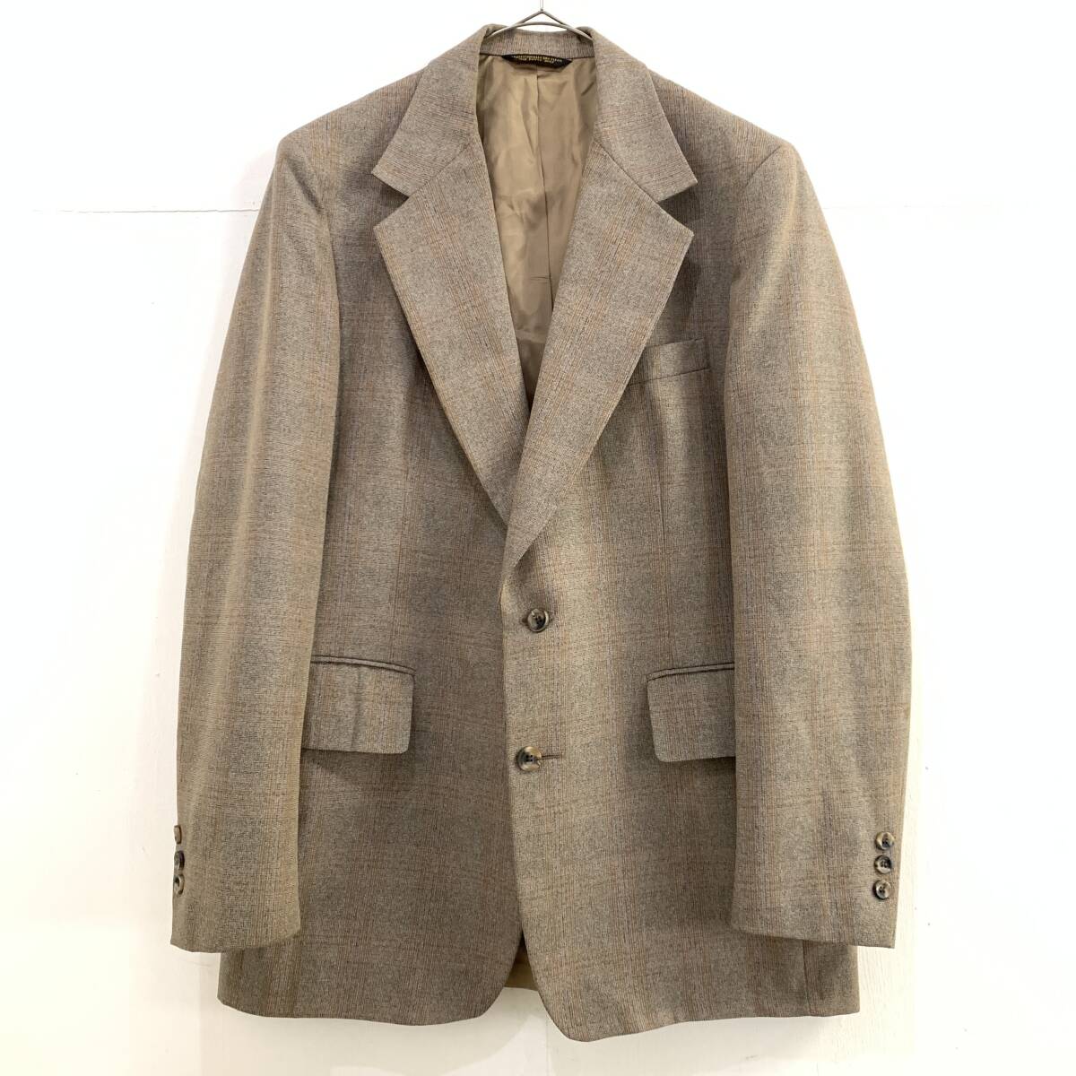 > ☆PalmBeach パームビーチ Vintage 70s〜80s USA製 アメリカ チェック柄 2Bテーラードジャケット グレージュ系 古着【送料一律/同梱可能】J