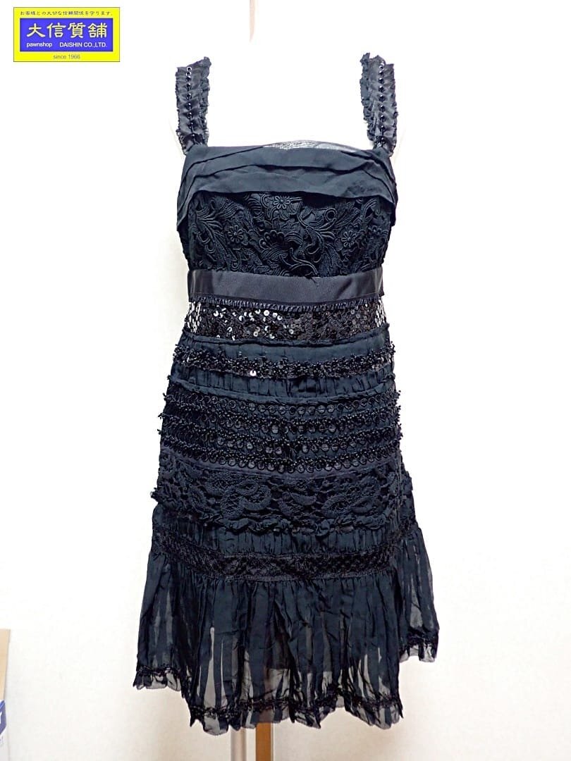> LOUIS VUITTON ルイ・ヴィトン エプロンワンピース ドレス スパンコール シルク コットン 38 ブラック 中古B+ 【送料無料】 A-8509