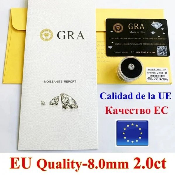> 【GRA認定書付き】ヨーロッパ EU品質 上位モデルのモアッサナイト ルース 2.0ct Dカラー ラウンドカット aa