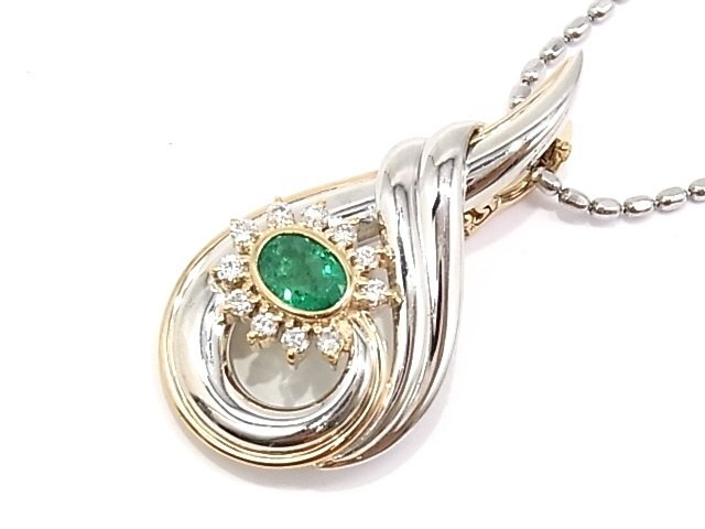 > g18006 Pt900/850/K18 E0.50ct D0.24ct ネックレス USED 美品 14.2g 50.5cm アジャスター付