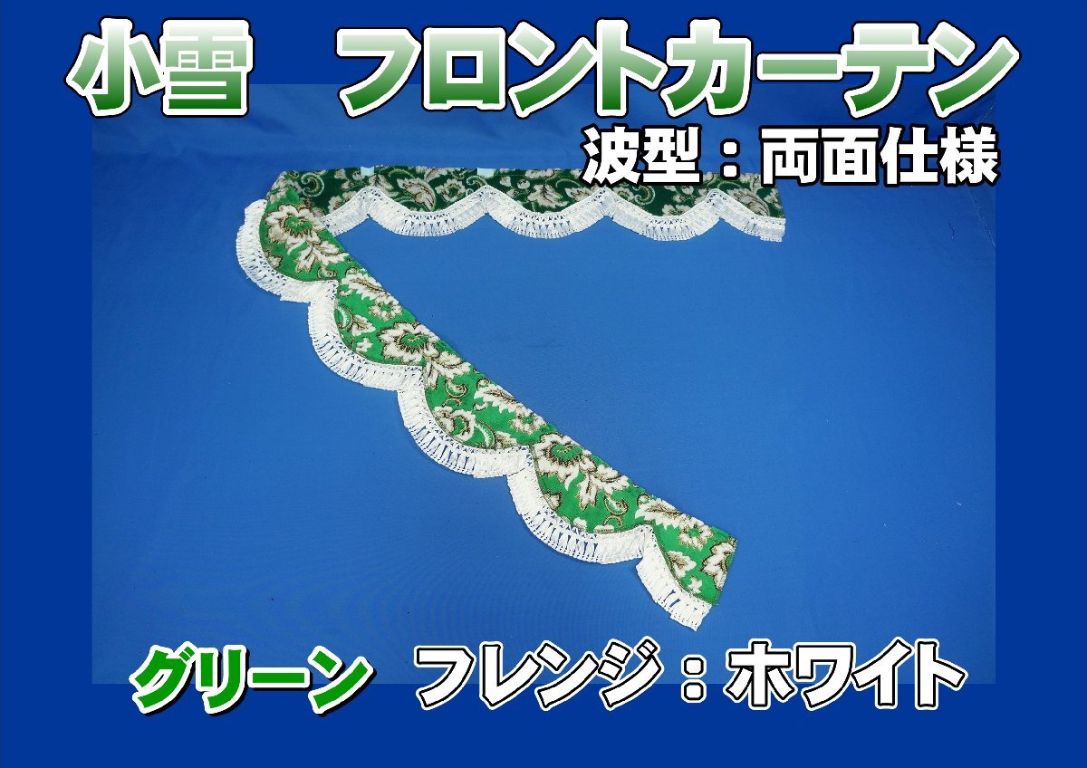 - 小雪 フロントカーテン 波型 両面仕様 縦柄 グリーン/フレンジホワイト