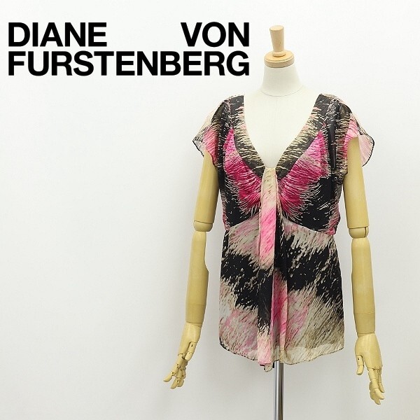 > ◆DIANE von FURSTENBERG ダイアンフォン ファステンバーグ GABIE シルク100% 総柄 シフォン タック ブラウス トップス 0