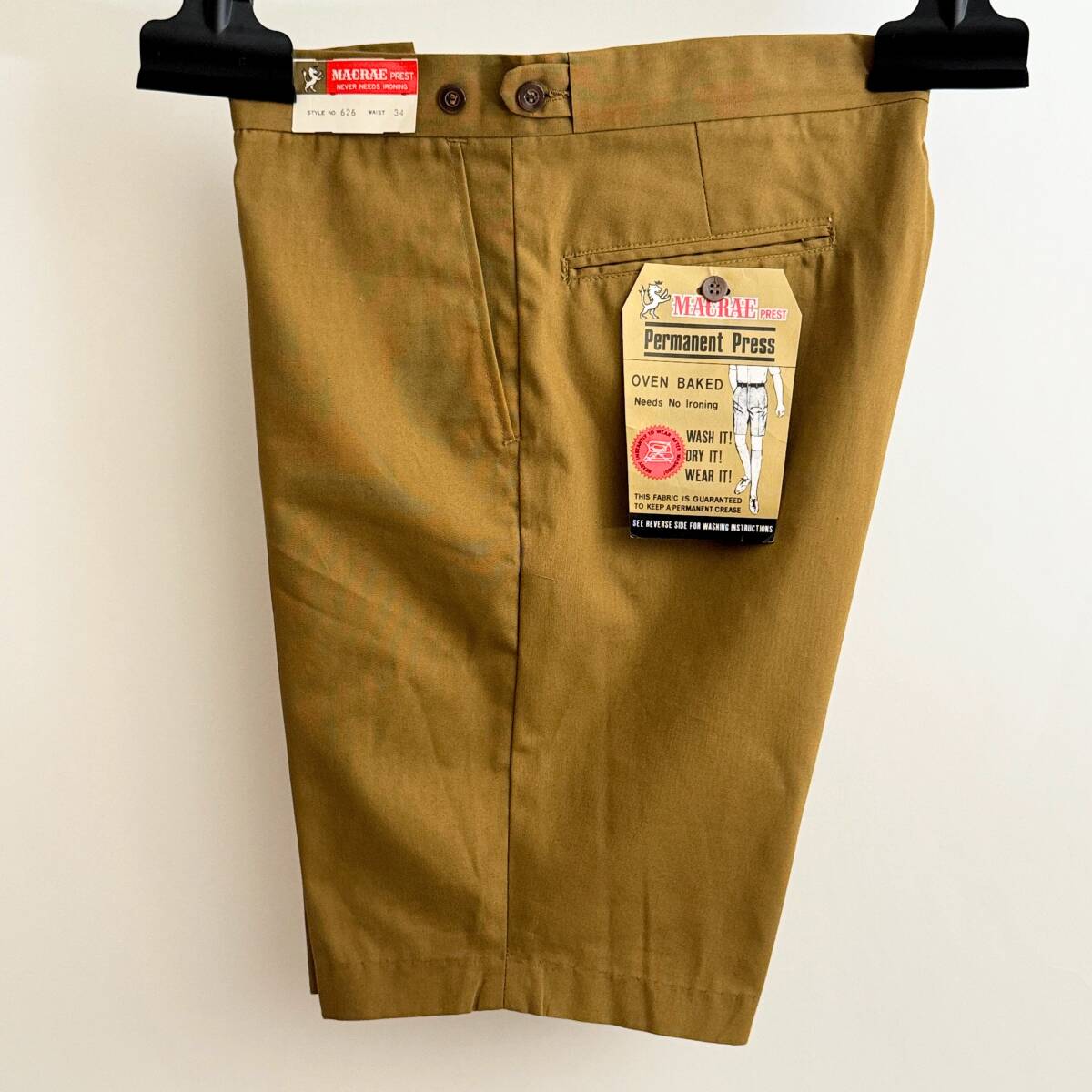 - 希少《 Dead Stock / Shorts / W34 》60s 70s デッド【 MACRAE PREST ビンテージ コットン/ポリ マスタード ショートパンツ 日本製 】