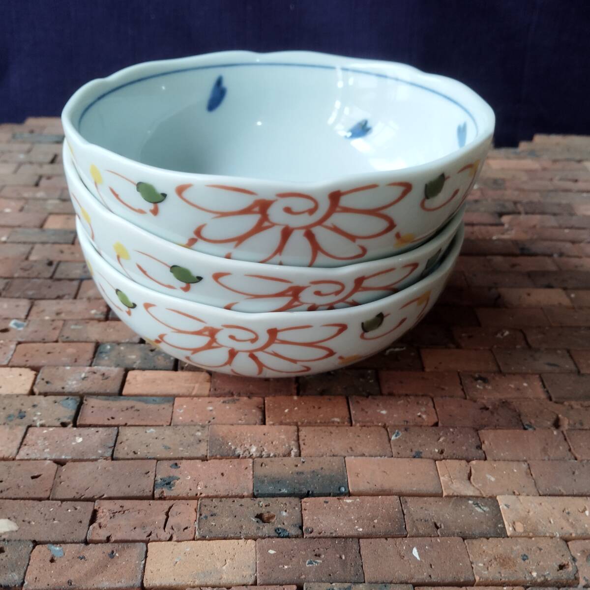 - 有田 清秀窯 煮物鉢 深皿 盛皿 鉢器 陶器 和食器 3客セット 絵変わり 色絵 花紋