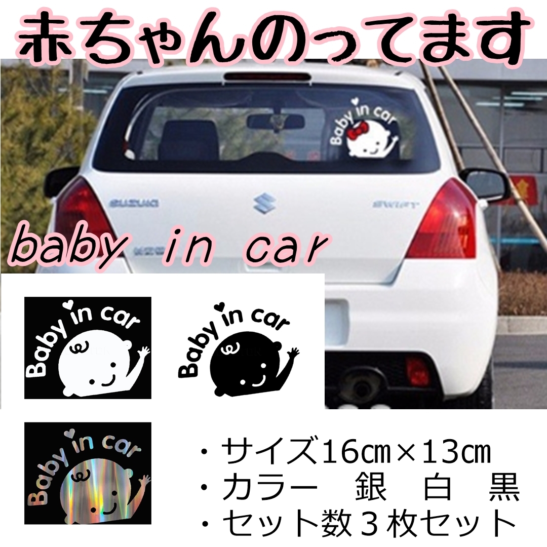 > ◆新品◆ BABY IN CAR 赤ちゃん 乗車中 ベイビーインザカー 赤ちゃんが乗ってます 車 サイン かわいい シンプル おしゃれ 男の子 3枚セット
