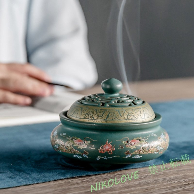 - 新品景泰藍 琺瑯彩 二龍戯珠 香皿 香炉 丸香炉 線香皿置物 仏具 美術品 アンティークモダン風 不燃綿付き 癒し LC910