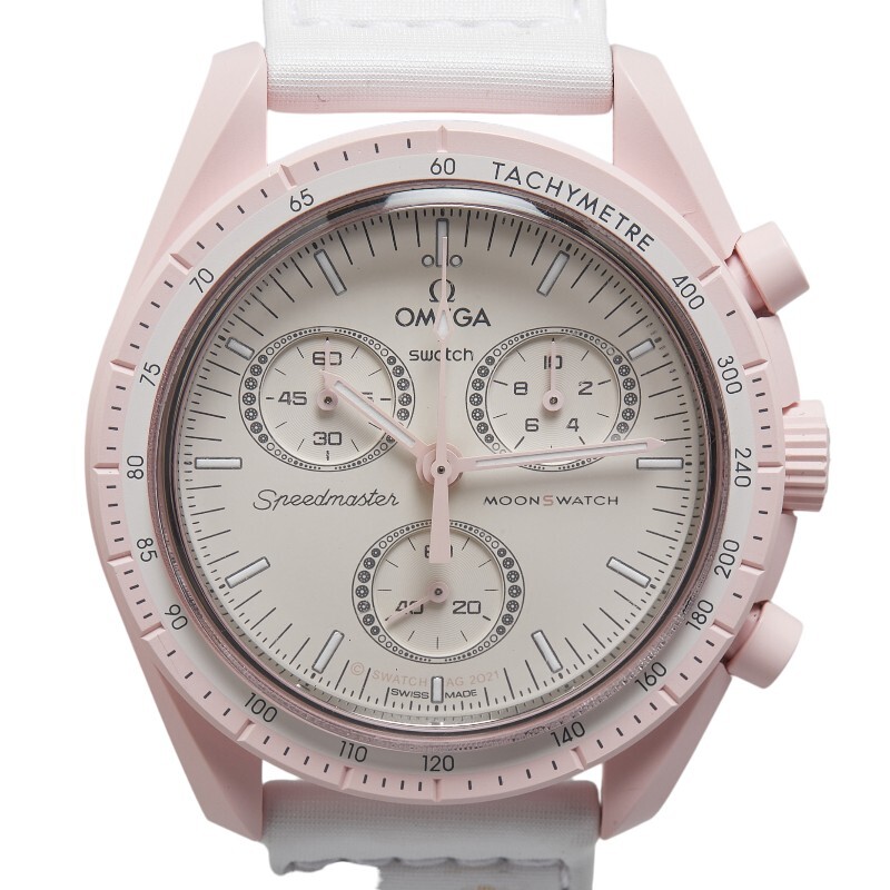 - スウォッチ スピードマスター コラボ ミッション トゥ ヴィーナス 腕時計 SO33P100 クオーツ アイボリー文字盤 Swatch 【中古】