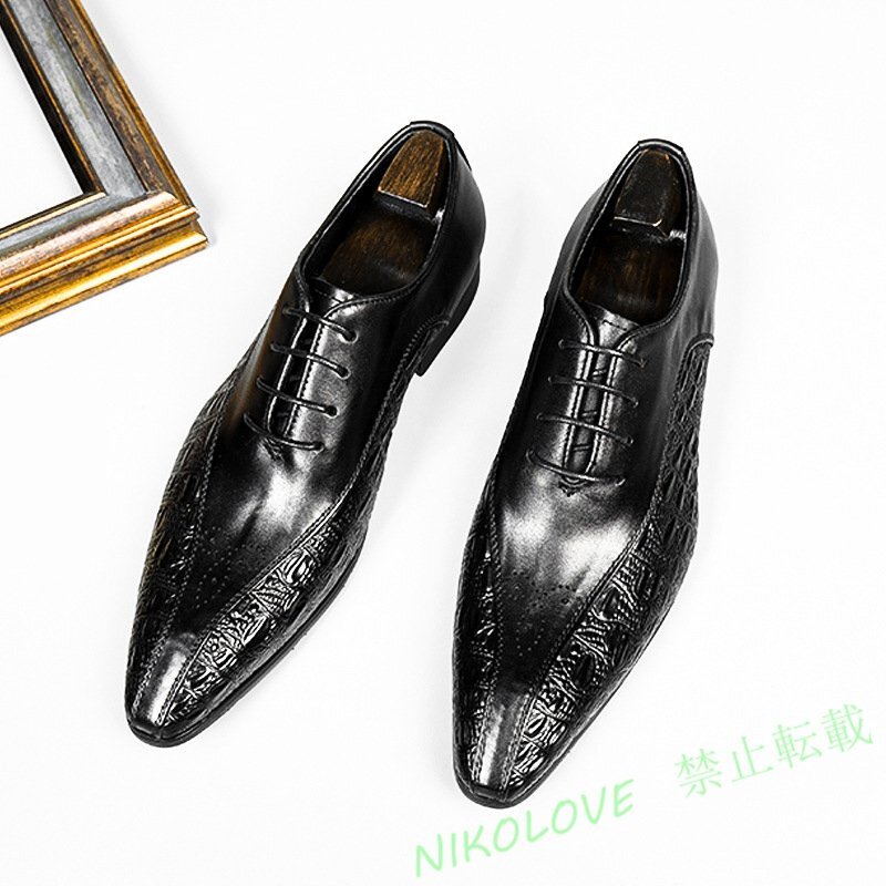 - 新品超希少 ビジネスシューズ メンズ イギリス風 職人手作り 鰐柄 牛革 紳士靴 本革レザーシューズ 結婚式 革靴24.5~27cm LD677
