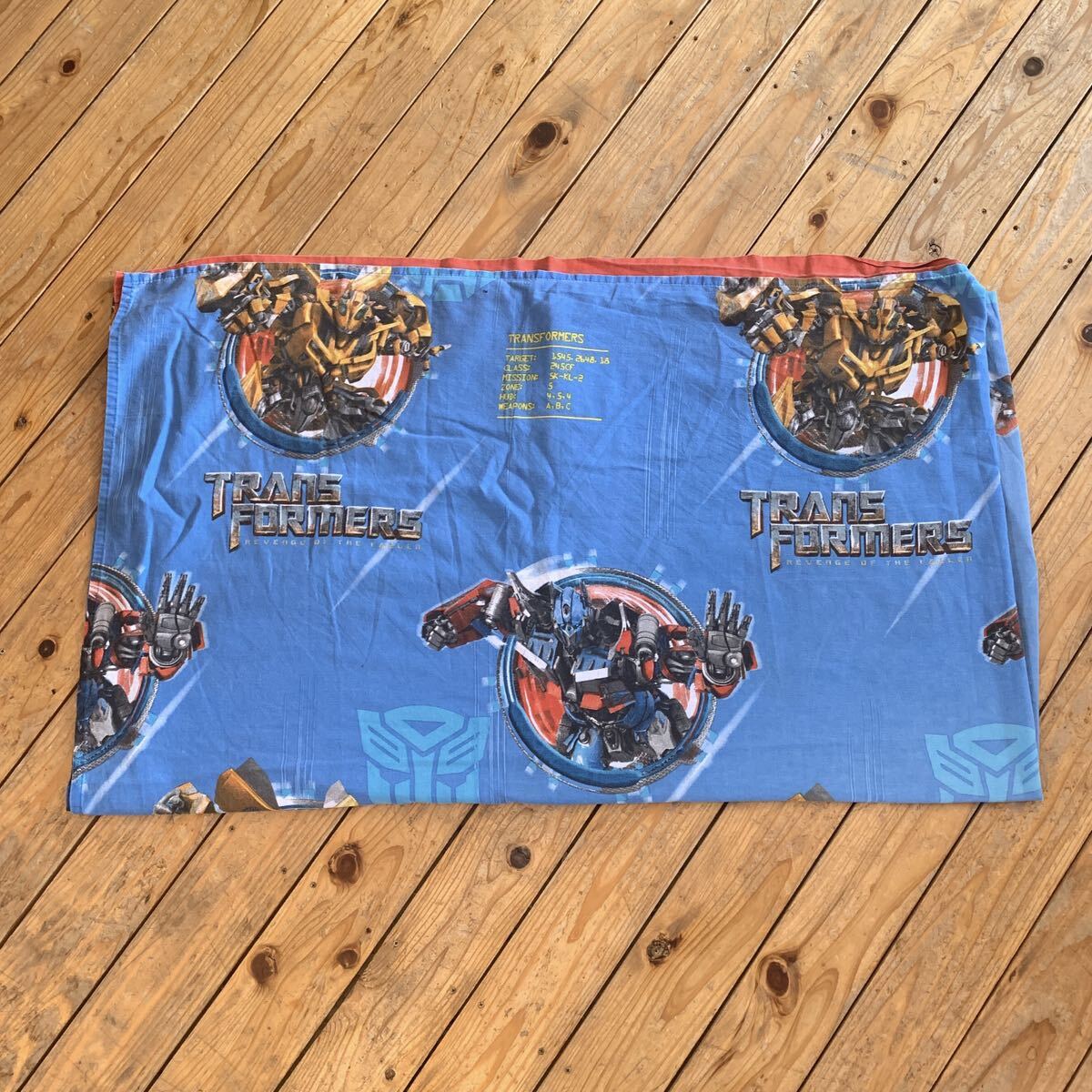 > USAヴィンテージ ベッドシーツ トランスフォーマーズ Trans Formers リメイク生地 ブルー 青地 素材 フラットシーツ アメリカ仕入 B2293