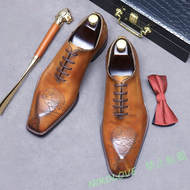 - 新品最高級 ビジネスシューズ メンズ 職人手作り 手塗仕上げ 本革 レザーシューズ 紳士靴 革靴 フォーマル ブラウン24~28cm LD986