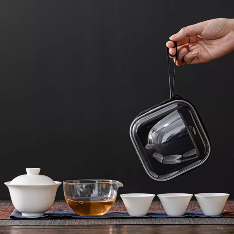- 人気 旅行茶具 茶道具 茶道 煎茶 中国茶 台湾茶 茶器 蓋碗 茶杯 公道杯 ケース 4点セット