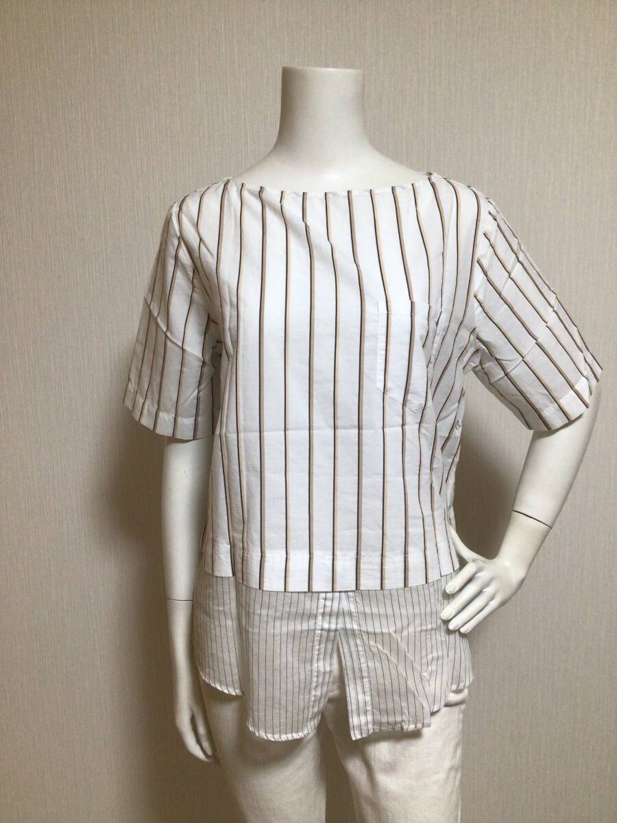 - M1086/センソユニコ ALYSI ストライプ切り替え前ポケカットソー/38/ホワイト
