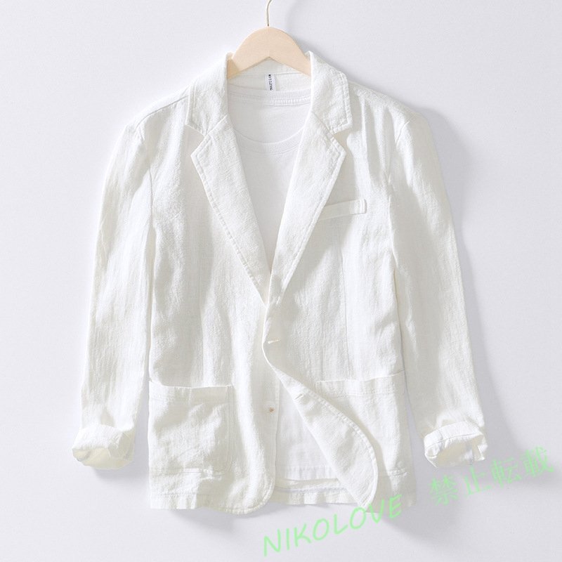 - 新品テーラードジャケット リネンジャケット春夏 亜麻 サマージャケット 涼しい アウター 高級 カジュアル M~4XL 白 LG392