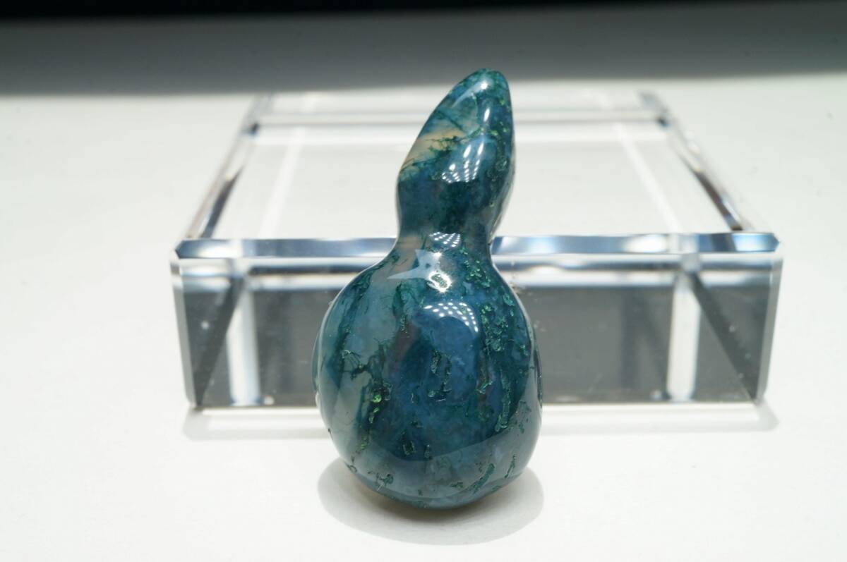 - 希少30年前の未使用在庫!上質モスアゲート瑪瑙・めのう・メノウ彫刻カービング「瓢箪」ルース色合い模様や彫が美しい25.6ct