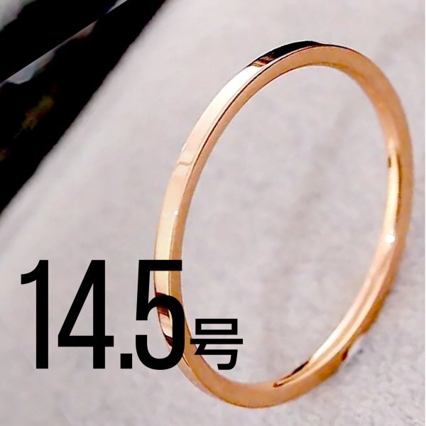 - J012-3 ステンレス1mm平打ちリング ピンクカラー 14.5号