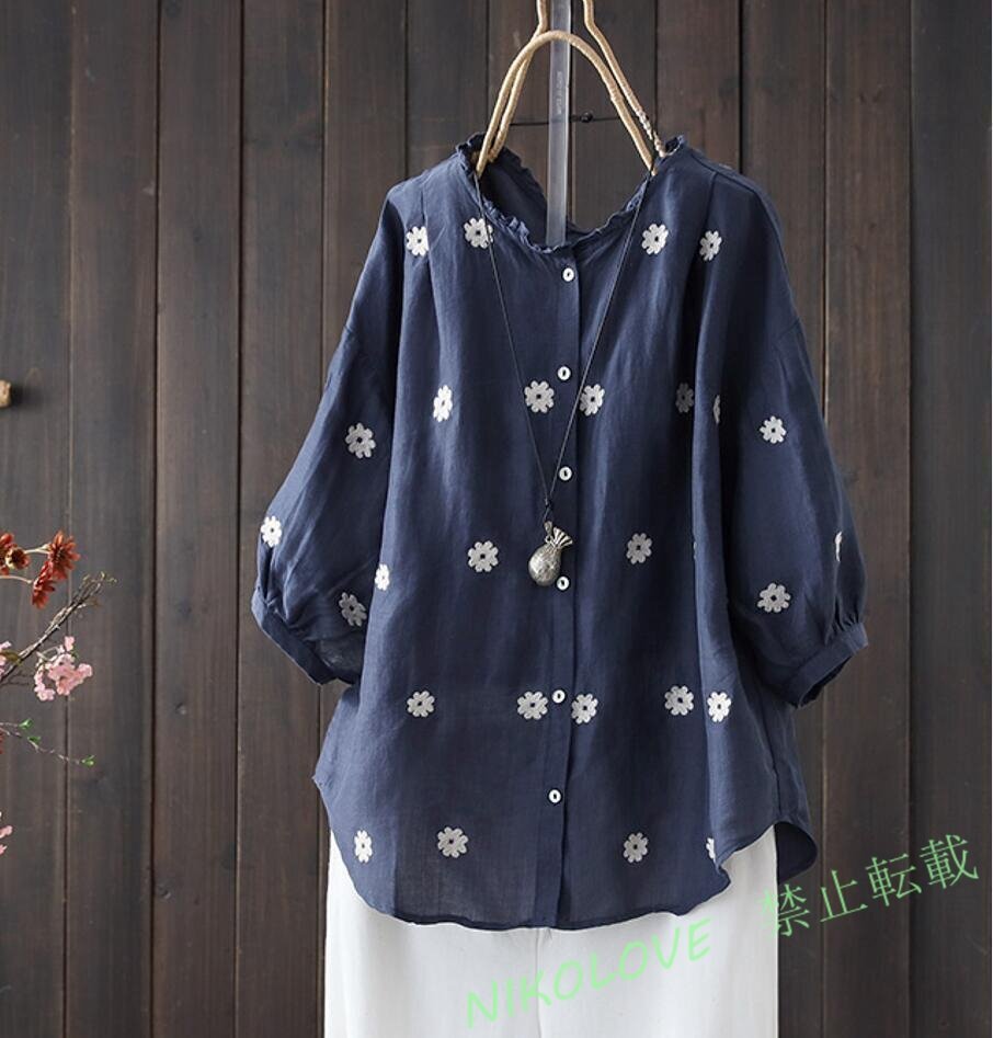 - 新品 リネン シャツ ブラウス レディース 半袖 綿麻ブラウス 花柄 コットンリネン 着心地 柔らかい トップス おしゃれ 大人可愛い LG769