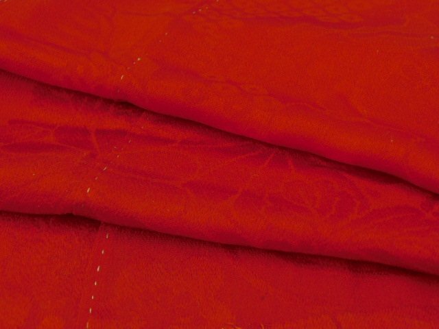 > 〔楽布〕P29917 昔の 紋縮緬 赤無地 ハギレ 32.5cm×60cm 古布古裂 k