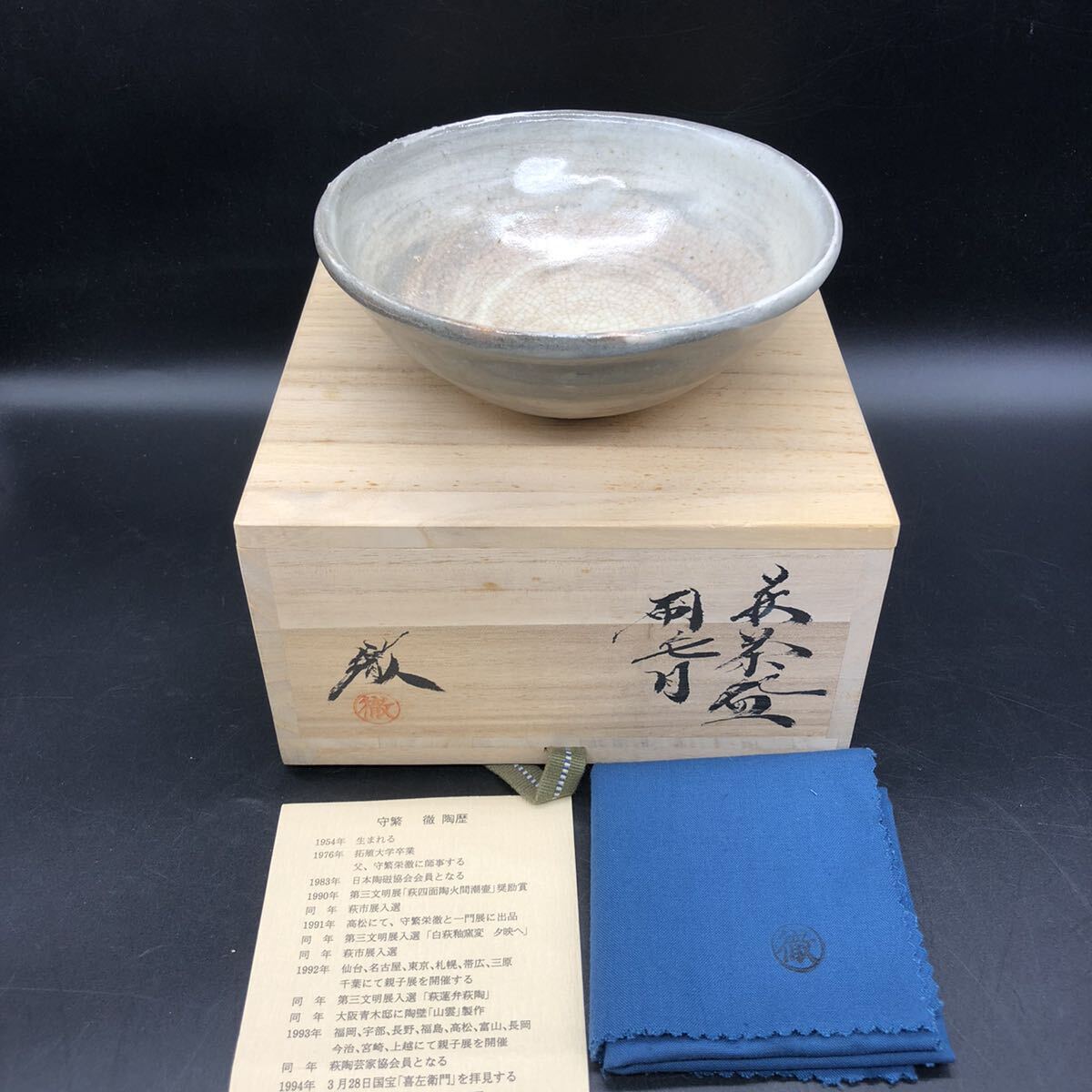 > 萩焼 守繁徹 蓮光山 萩茶碗 刷毛目 茶碗 茶器 茶道具 抹茶碗 共箱 共布 イ2