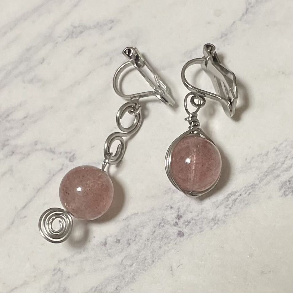 - A14. 天然石 イヤリング ピンクエピトード ハンドメイド サージカルステンレス アレルギーフリー ニッケルフリー アシンメトリー