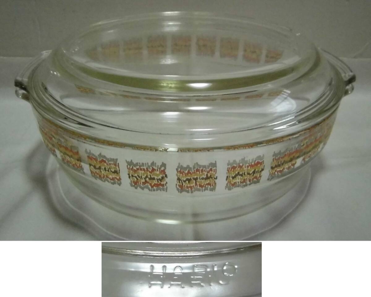 - 耐熱ガラス 容器 HARIO ハリオ 蓋付 鍋 取っ手付 丸型 硝子製 クッキングストッカー 調理器具 食器 工芸品 レトロ