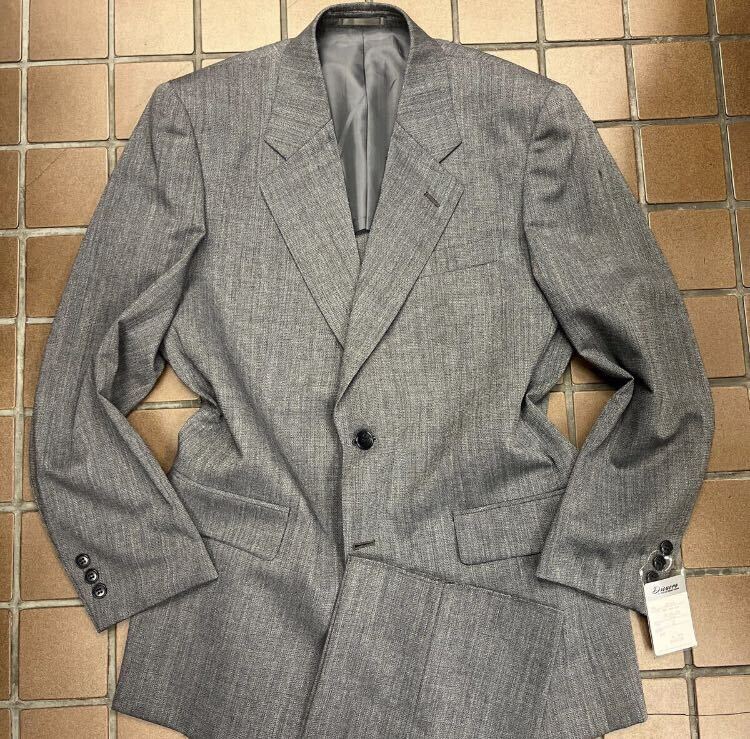- 新品☆未使用【サイズA6 L★贅沢な艶感】2Bシングルスーツ グレー系 背抜き センターベンツ 2タック 背広 セットアップ ウール リクルート