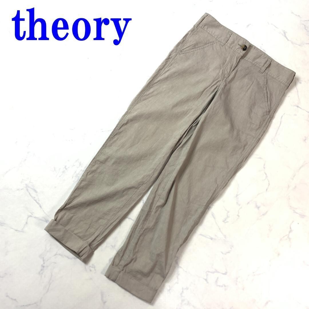 - theory セオリー ストレッチカジュアルパンツ グレーベージュロールアップ ポ ケット有 薄手 透け感無0 C456