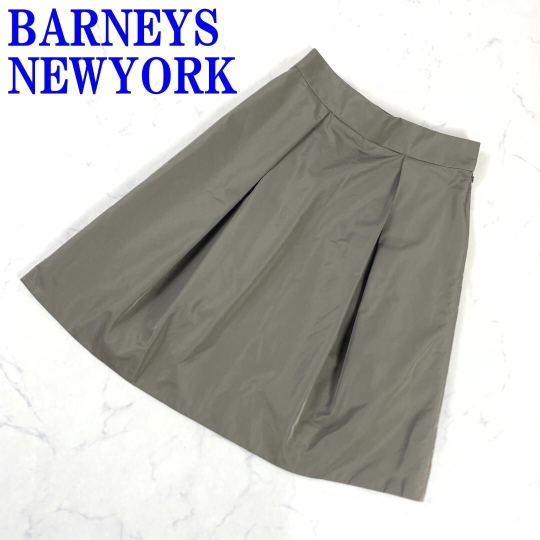 > バーニーズニューヨーク タックフレアスカートサンドベージュBARNEYS NEWYORK カジュアル 光沢感有 ポケット無 40 C334