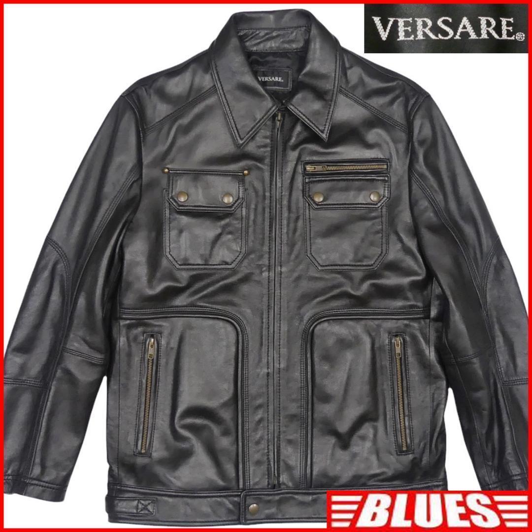 - 即決★VERSARE★メンズM レザージャケット ヴェルサーレ 黒 本革 ブルゾン 本皮 ジャンパー 革ジャン ハーフコート 4ポケット