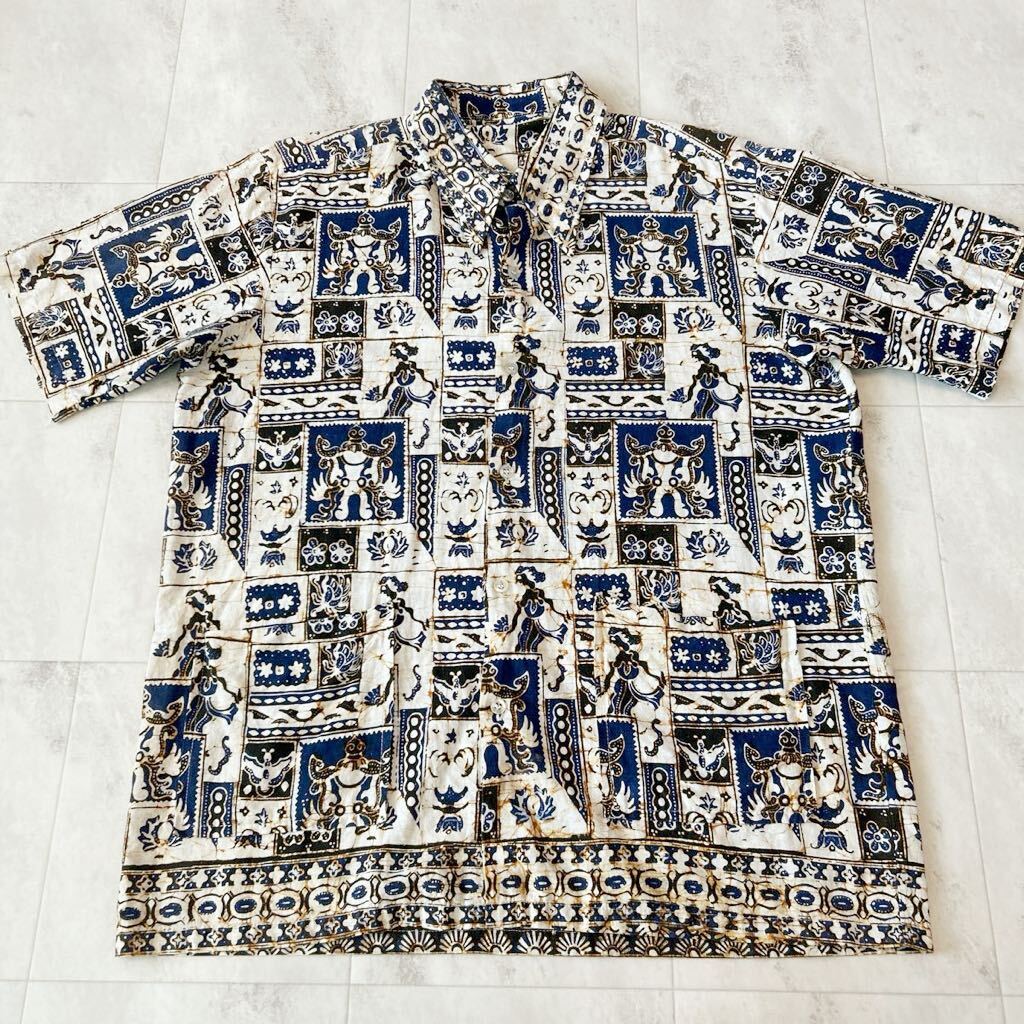 - 70s BATIC 総柄 柄シャツ 民族柄 ポケット レトロ アート ビンテージ 半袖シャツ