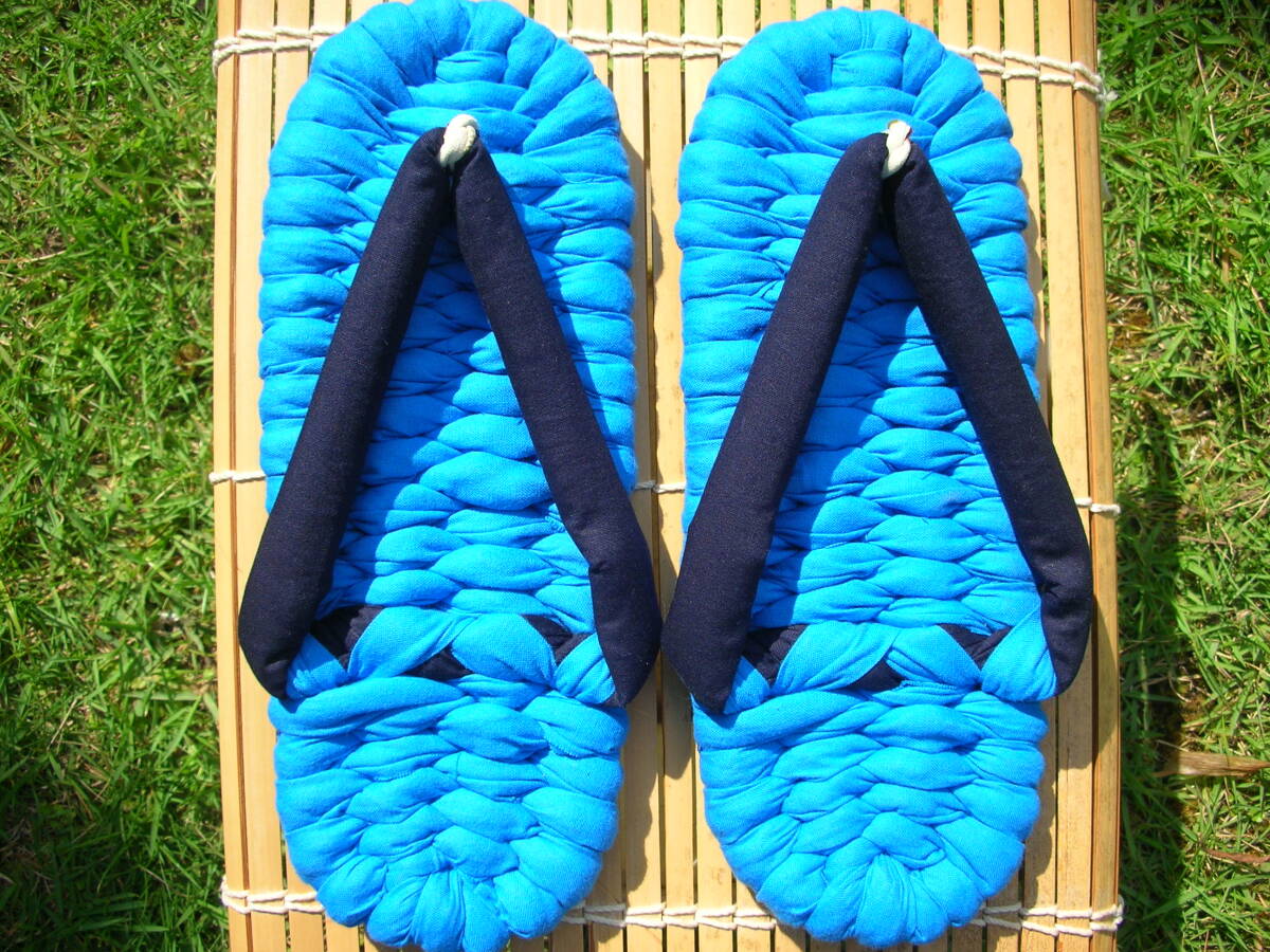 - ☆ステキな布ぞうり☆25.5cm☆No.56☆ 色は青!! 裏布付き!