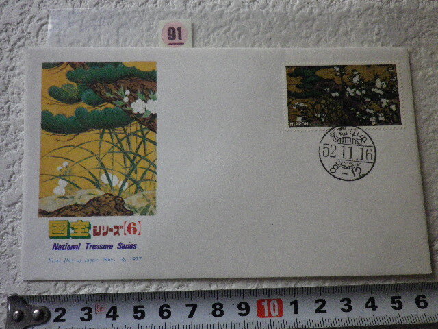 - FDC 第2次国宝 第6集 1貼1消 京都中央 和文ハト印 1977年 解説書有●91●