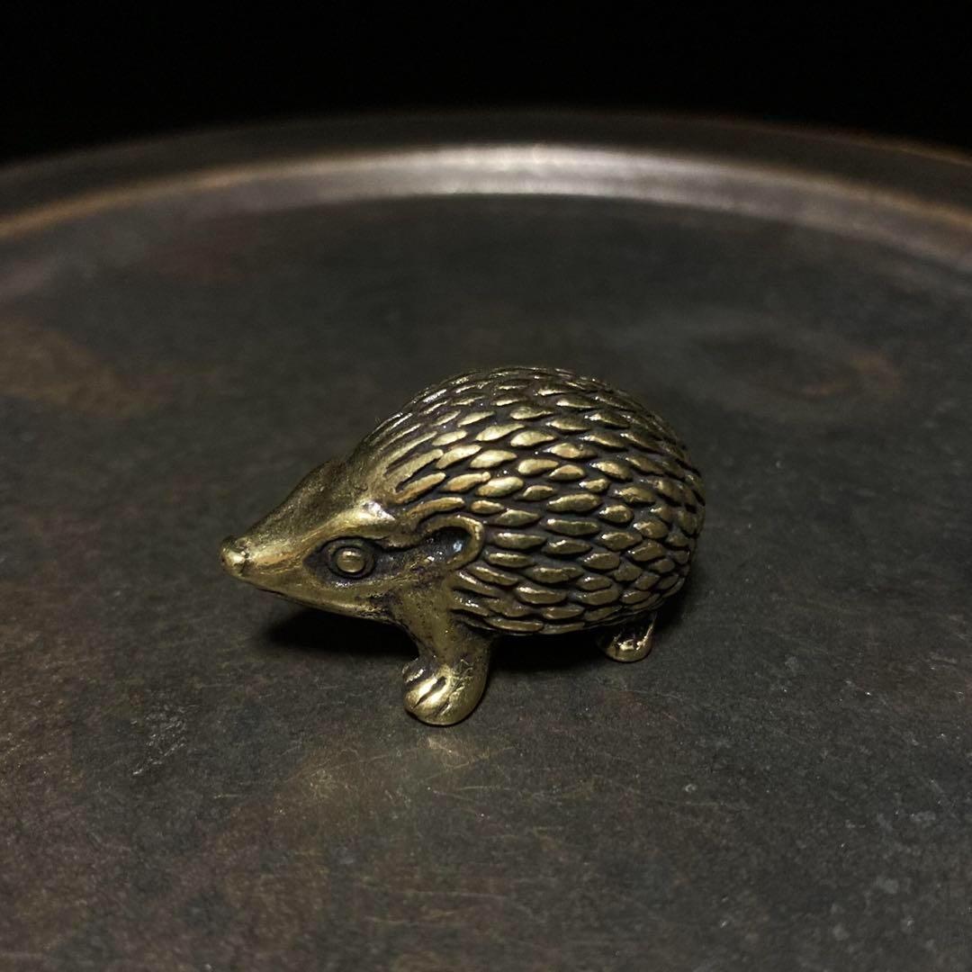 - 191 真鍮 置物 ハリネズミ ビンテージ 風水 開運 金運 工芸品 ヴィンテージ レトロ 真鍮製 置き物 オブジェ アンティーク ハンドメイド