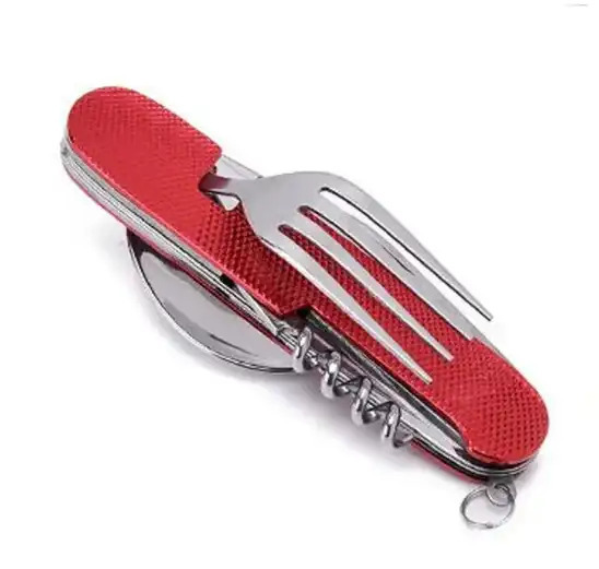 - 新品 多機能 折りたたみ式 レッド 食器 ナイフ スプーン フォーク 栓抜き コルク栓 分割 カトラリー アウトドア キャンプ 送料無料