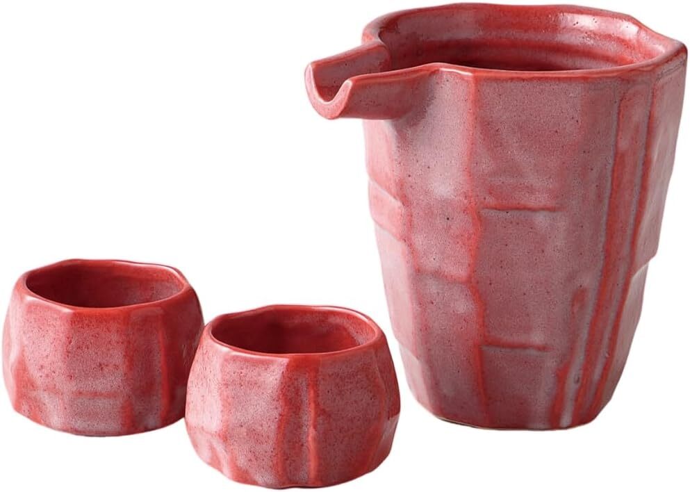 - 美濃焼! ☆赤楽酒器セット☆ V4052-1 新品 ぐい呑 盃 杯 カズキ お猪口 徳利 片口 ギフト